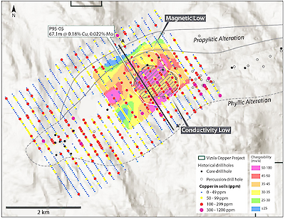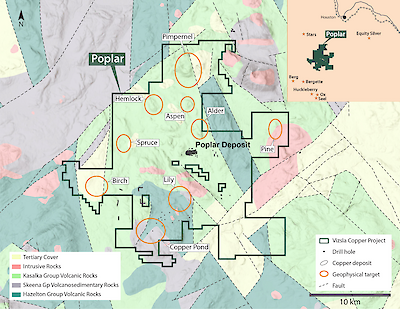 Vizsla Copper acquired the Poplar project from Universal Copper in February 2024, previous drill programs by UNV in 2019 and 2021 focused on increasing resources at depth and to the west of the property, outlining nine high-priority targets.